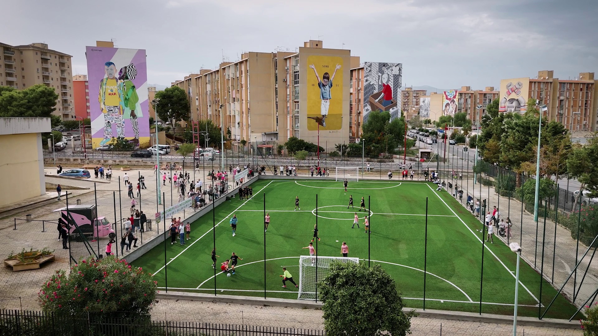 Abbiamo scelto di lavorare con una troupe leggera e dinamica, capace di adattarsi rapidamente alle diverse situazioni e di cogliere l’essenza del racconto con spontaneità. L’obiettivo era quello di entrare nei quartieri senza essere intrusi, ma ospiti attivi, partecipando alla vita locale: cene collettive, incontri con tifosi e associazioni, momenti di condivisione e confronto. Il tutto con uno stile di ripresa agile, discreto e autentico poter allestire un’intervista a tempo… quasi zero! E per la vita di quartiere senza filtri o artifici.